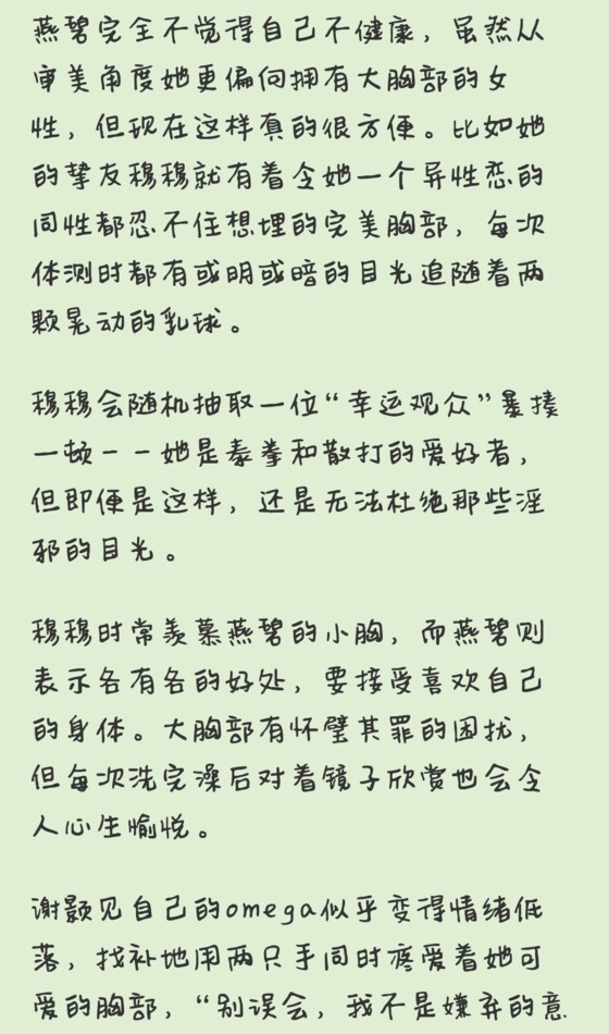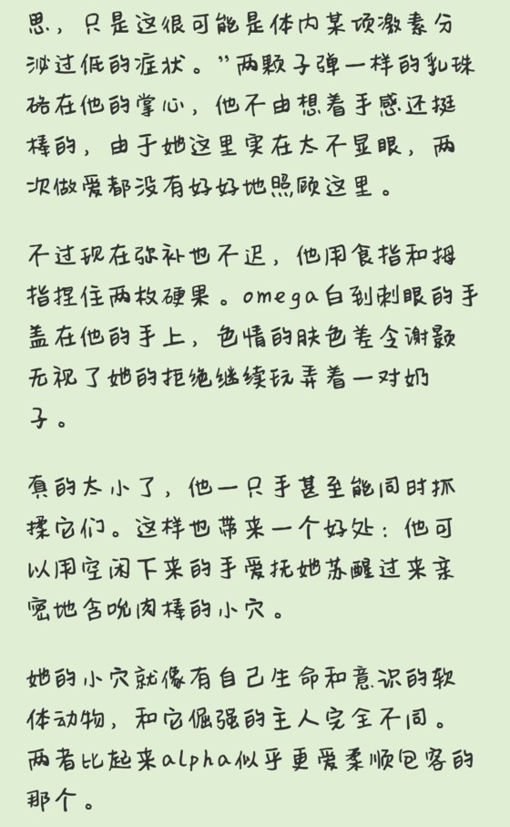 “你就不能安静一会儿吗?”燕碧无奈地说,“我宁愿你是嫌弃,我本来也不需要你的喜huan。”如果能因此摆脱alpha就太好了,反正她喜huan自己的xiongbu,不用这个讨厌的alpha对自己的shenti进行评判。