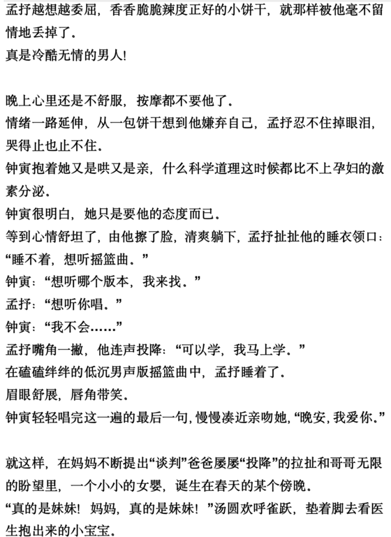 钟寅接过孩子放在孟抒shen边,手臂半圈着她,说不chu的心疼:“辛苦了。”